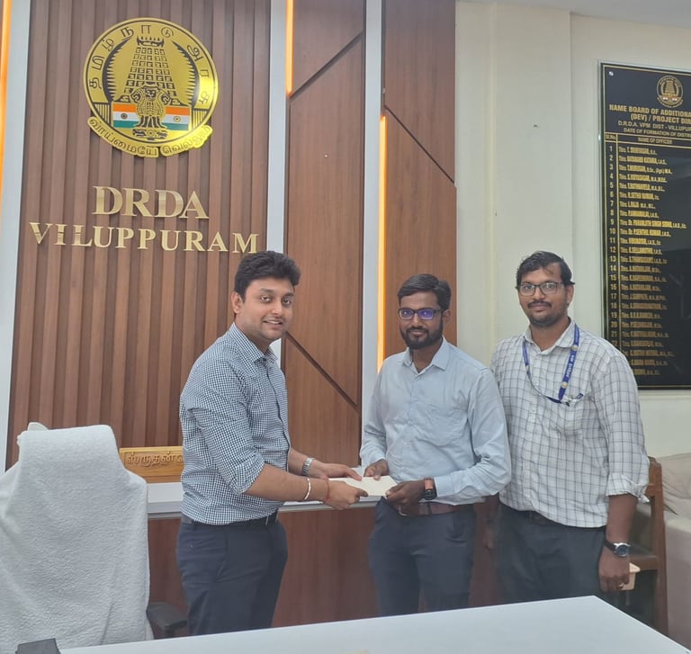 We were honored to receive appreciation from Thiru. Srutanjay Narayanan, IAS, Additional Collector (2024), DRDA – Villupuram, and Thiru. Sentamil from Startup Tamil Nadu for our contributions.